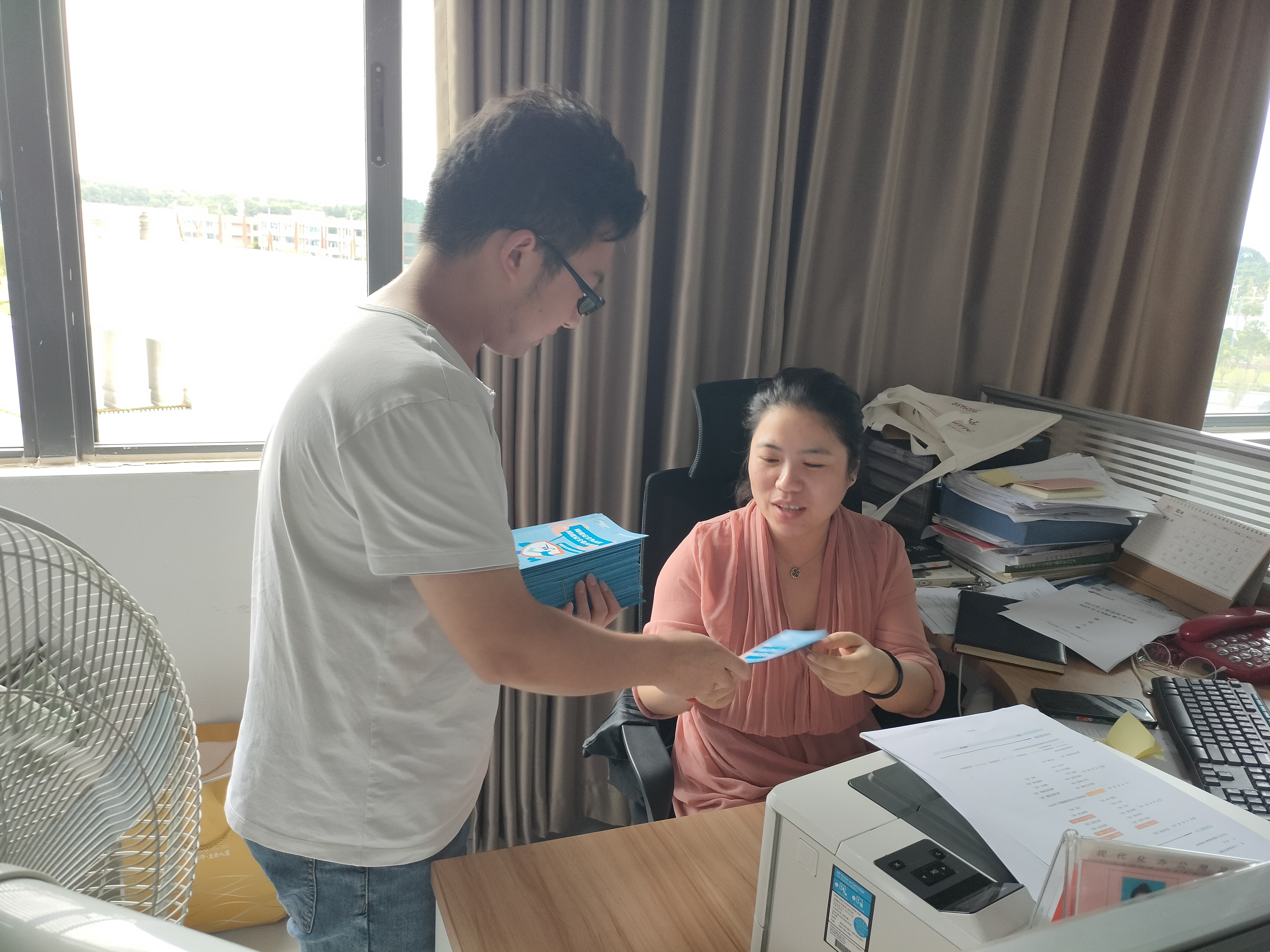 图文信息中心工作员到教师办公室、图书馆发放国家网络安全周宣传手册,向师生宣传网络安全知识。